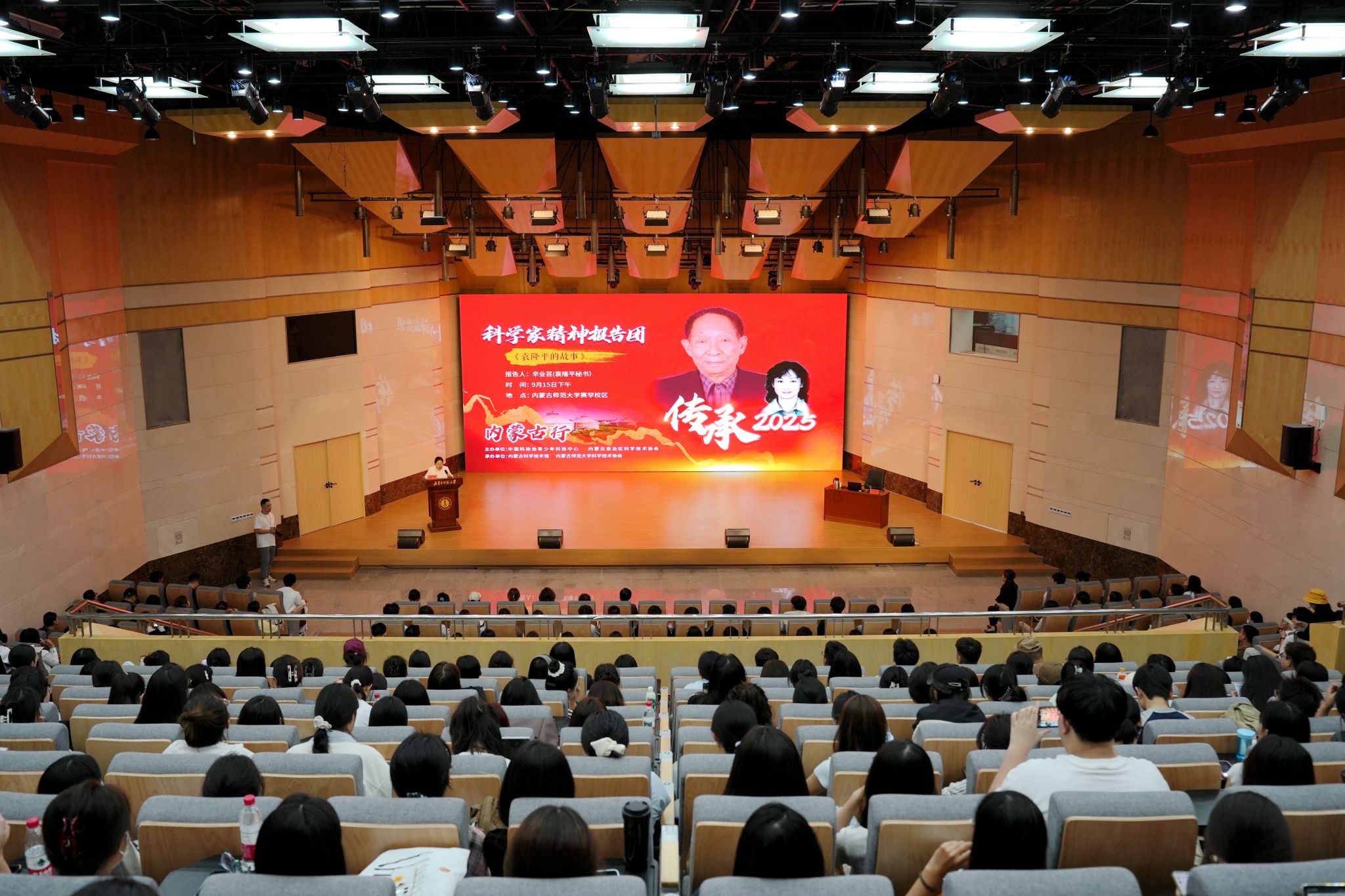 本網訊 為深入學習貫徹習近平總書記關于弘揚科學家精神的重要指示,引導廣大青年學子樹立科技報國志向,9月15日,由內蒙古自治區科學技術協會聯合中國科學技術協會青少年科技中心主辦、內蒙古師范大學科學技術協會承辦的“講述前輩故事,弘揚科學精神,播撒科學種子”科學家精神報告校園巡講活動在內蒙古師范大學賽罕校區和盛樂校區成功舉行。活動以專題講座的形式,邀請科學家身邊人講述真實感人的事跡,弘揚愛國、創新、求實、奉獻的科學家精神。內蒙古自治區科協副主席趙遠亮、內蒙古科技館副館長永青、內蒙古師范大學副校長賈美林出席活動。