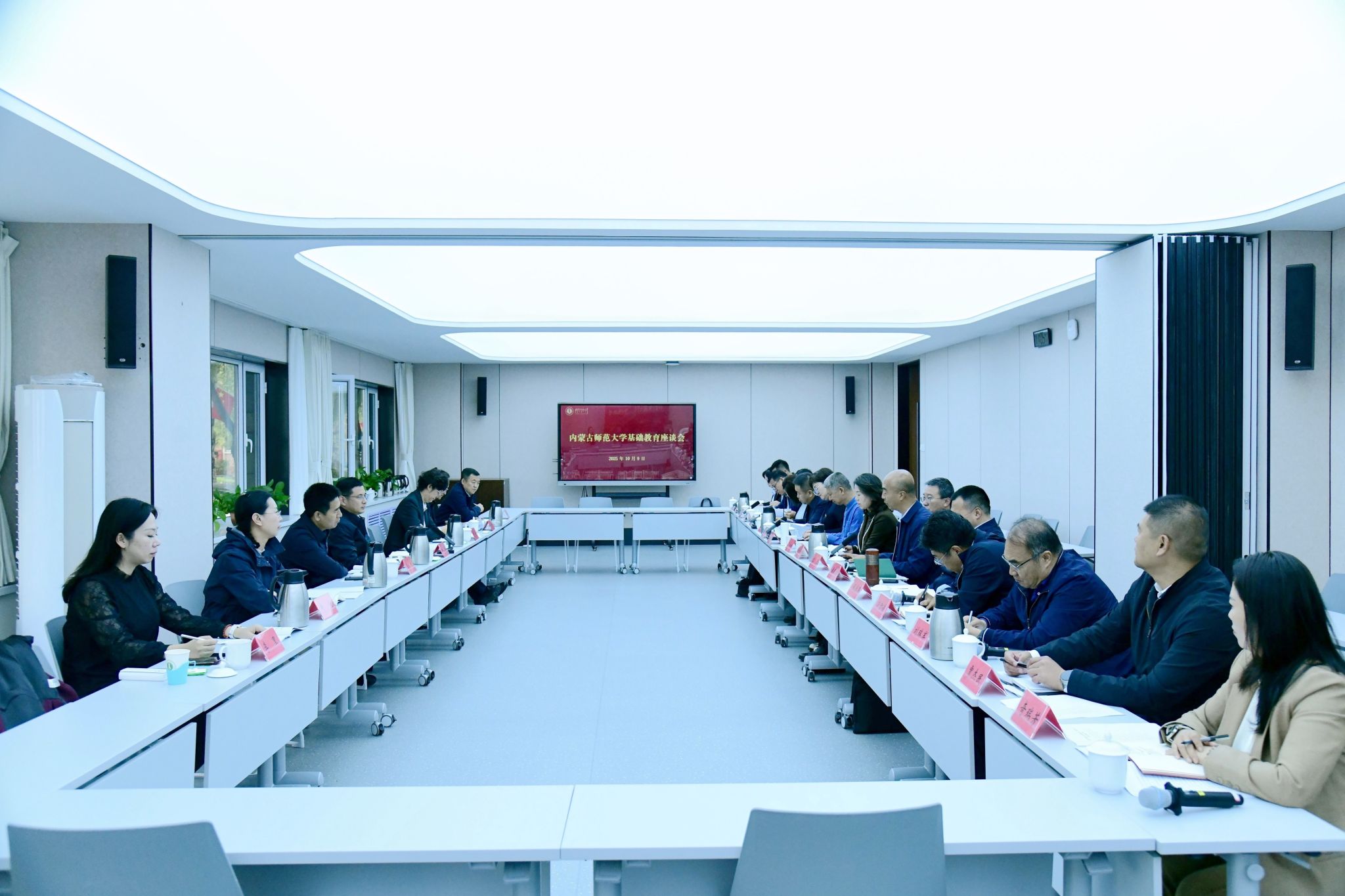 本網訊 10月9日,我校在賽罕校區信息樓學術交流中心5號會議室召開基礎教育座談會。黨委書記李樹林出席會議并講話。黨委副書記、校長張軍出席并主持會議。全體校領導出席會議。各附屬學校書記、校長,附屬幼兒園園長,學校相關職能處室負責同志,有關學院院長、副院長及基礎教育發展委員會委員參加會議。