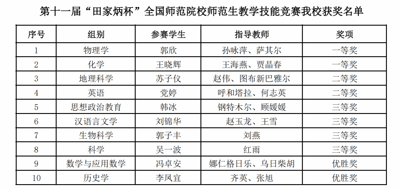 學(xué)校一直秉承“以賽促教、以賽促學(xué)、以賽促改、以賽促建”的長效機制,持續(xù)推進(jìn)“院—校—省—國”四級競賽體系,有效促進(jìn)了師范生教學(xué)能力和水平的提升。下一步,學(xué)校將繼續(xù)以教育家精神為引領(lǐng),聚焦教師學(xué)科能力與素養(yǎng)雙重提升,強化師范生教學(xué)實踐與育人智慧培養(yǎng),構(gòu)建“專業(yè)筑基—實踐賦能—情懷鑄魂”的全鏈條育人體系,著力培養(yǎng)新時代高素質(zhì)專業(yè)化教師隊伍,助力自治區(qū)基礎(chǔ)教育高質(zhì)量發(fā)展。