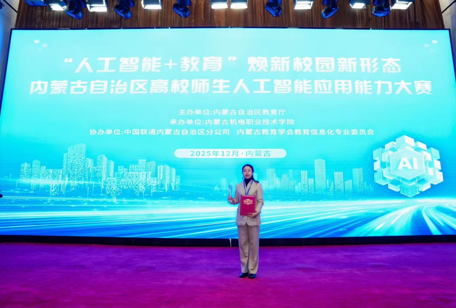 本網訊 近日,由內蒙古自治區教育廳主辦、內蒙古機電職業技術學院承辦的內蒙古自治區首屆高校師生人工智能應用能力大賽圓滿落幕。我校師生榮獲大賽一等獎1項、二等獎2項、三等獎1項。