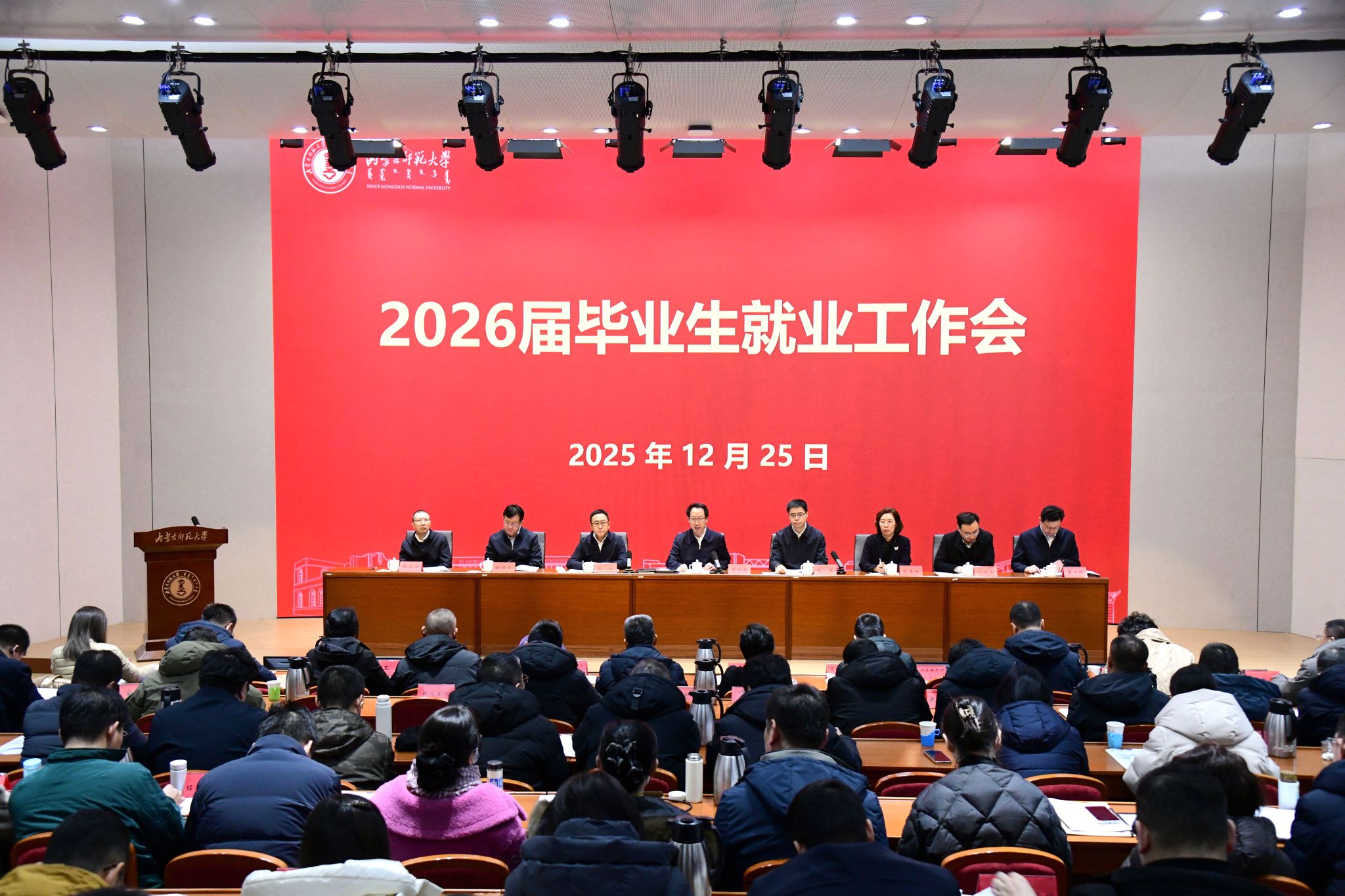 本網訊 12月25日,學校召開2026屆畢業生就業工作會。校黨委書記李樹林出席會議并講話。黨委副書記、校長張軍主持會議。黨委副書記斯欽宣讀《關于表彰內蒙古師范大學2025年度就業育人工作先進集體、進步獎、優秀導師、優秀班主任、先進個人的決定》。學校領導賈美林、趙曉東、公茂果、楊玉成出席會議。各職能部門、教輔機構主要負責同志,各學院領導班子成員、學就辦負責人、班主任代表參加會議。